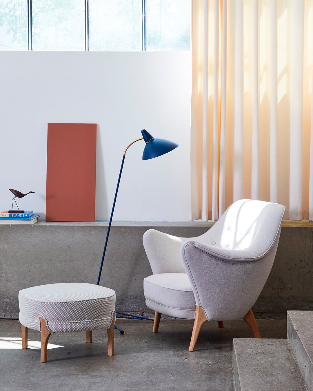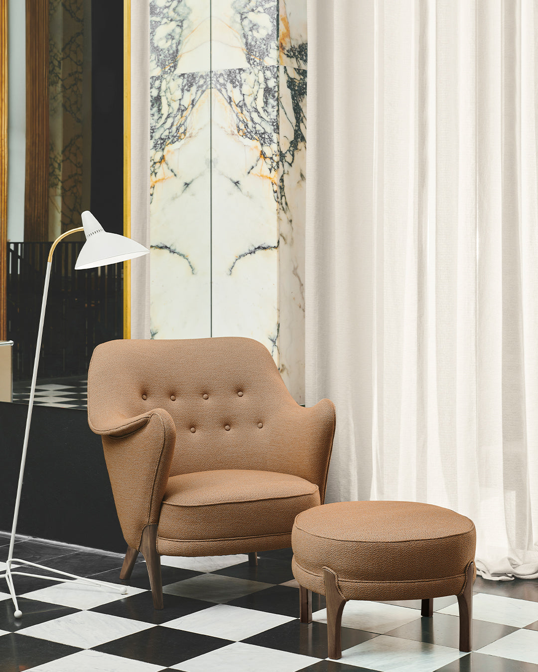 Elegant lounge chair with an embracing, organic design that combines classic virtues with a warm personality. The chair was designed in 1953 by the renowned Danish furniture designer Arne Hovmand-Olsen, who became known for innovative furniture in the Scandinavian style. With the Cocktail chair, you get original design in the most beautiful processing for your favorite corner in the living room, bedroom or office, just as the lounge chair will dress up a sofa arrangement. The rich padding creates fullness and, together with the buttons, draws references to the 50s, while the exclusive textile choice brings the design into the present.