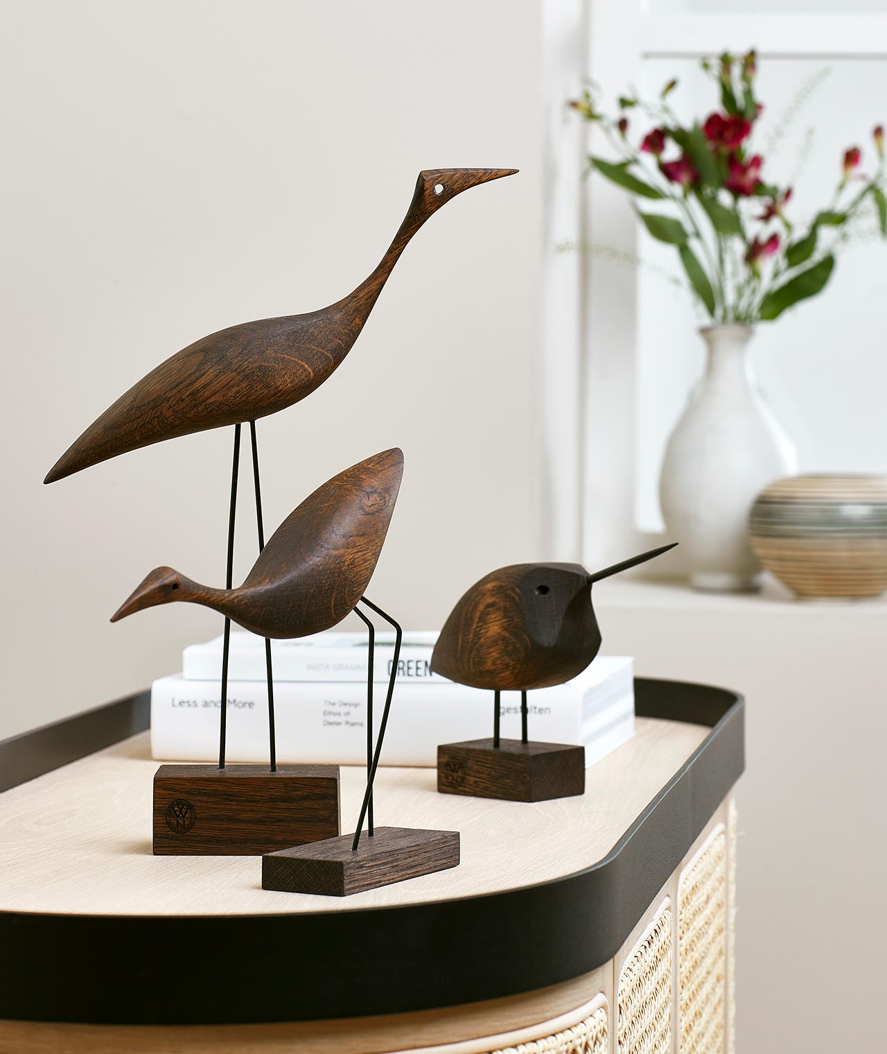 Vores Beak Birds er designet af den internationalt anerkendte designer Svend Aage Holm-Sørensen, der især er kendt for sine lampedesign fra 50’erne. Hver fugl er unik og finder sit endelige udtryk i det enkelte stykke egetræ af højeste kvalitet. Udforsk vores Beak Birds blandt vores FSC-certificerede sortiment.