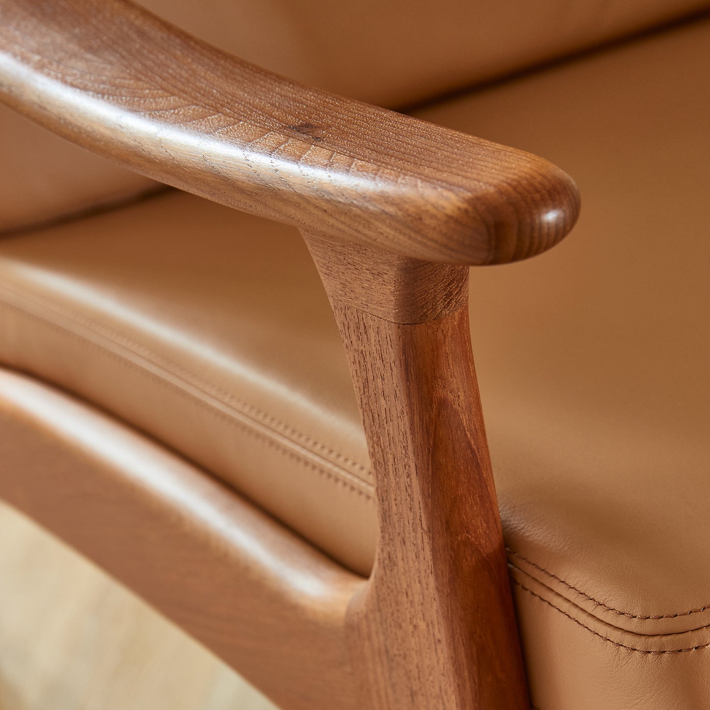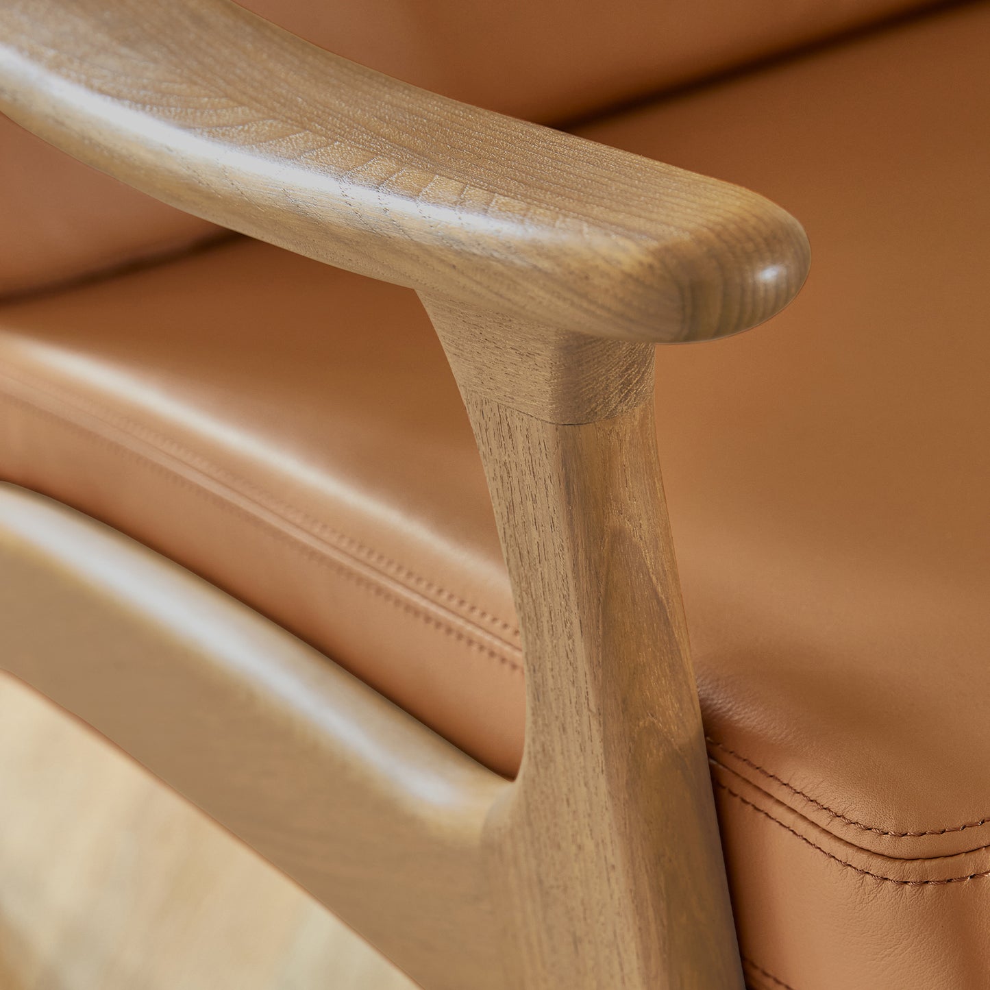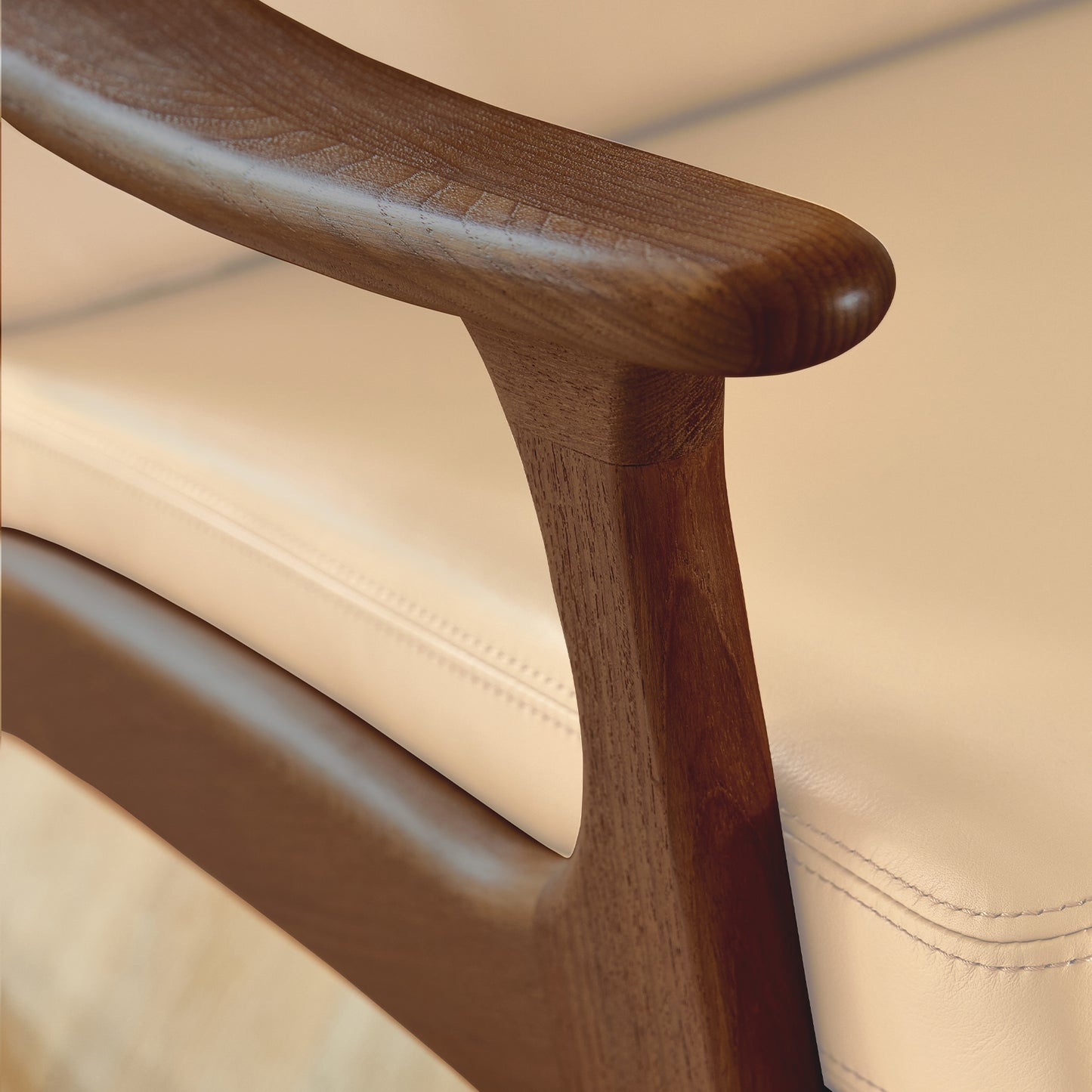 Lean Back er en elegant, tilbagelænet loungestol i 50’er design, skabt af den anerkendte danske møbeldesigner Arne Hovmand-Olsen. Til trods for letheden og et næsten svævende udtryk er loungestolen utrolig behagelig at sidde i og inviterer til lange ophold med samtaler omkring sofabordet eller fordybelse i bøgernes og magasinernes verden. Armlænet i massivt træ er så elegant formgivet, at det næsten ligner læder med sit bløde svaj. Som en særlig kvalitet i designet er Lean Back loungestolen smuk fra alle vinkler, så den kan stå frit i rummet.